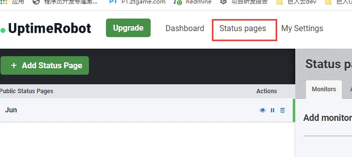 # 使用uptimerobot监控网站状态 2021-11-22 1 min read B级 old_website Table of Contents 💬 回复: Jun (2021-11-22) 1.注册uptimerobot 2.点击左上角 3.根据提示设置Friendly Name等信息(status详细页面里显示的名字) 4.然后点击上方的Status pages 5.点击 6.页面中可以不设置密码,创建成功后可以在add monitors页面添加在第2步设置的监控网站 7.点击save即可 💬 回复: Jun (2021-11-22) 网站页脚里的“状态”就是用的uptimerobot
